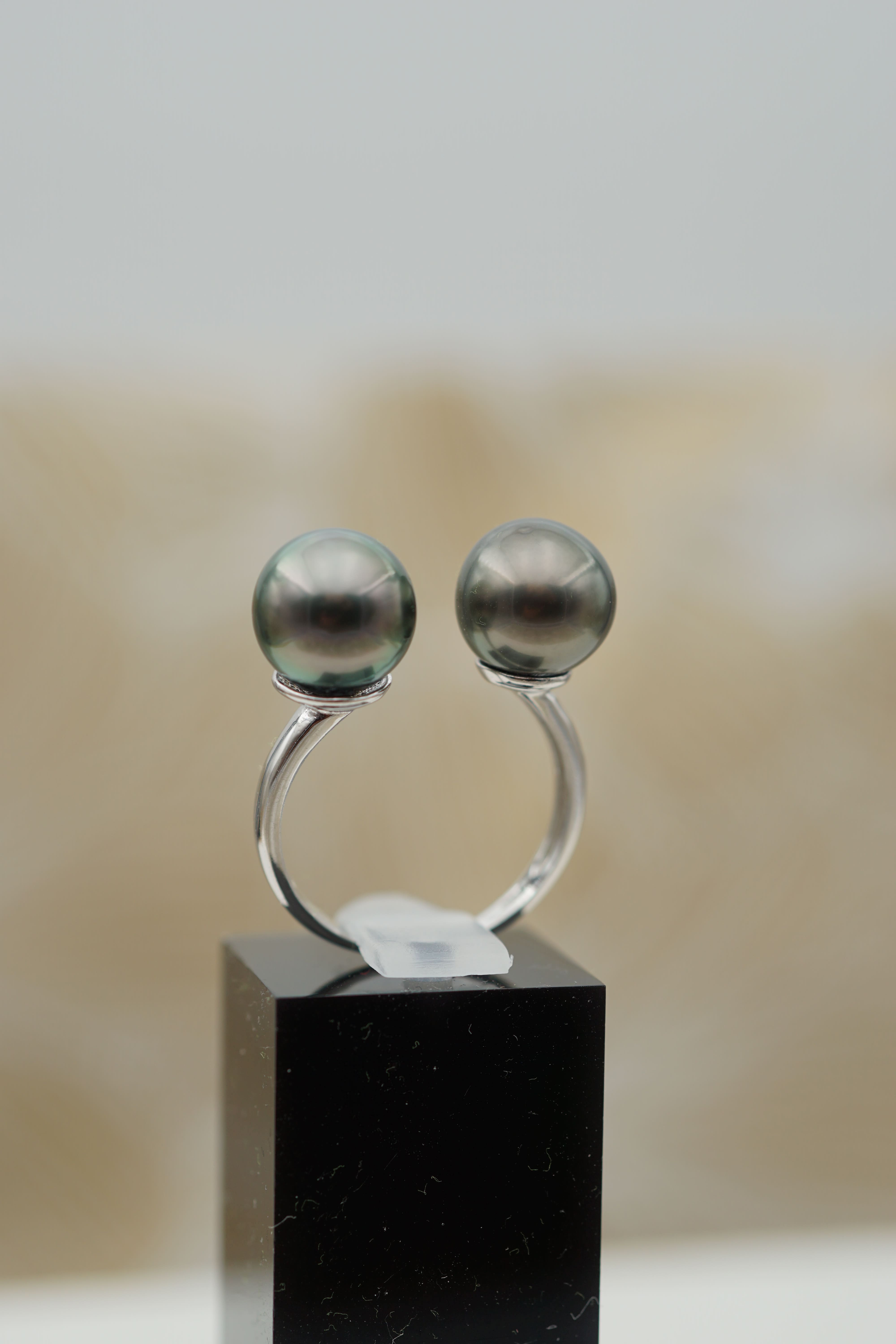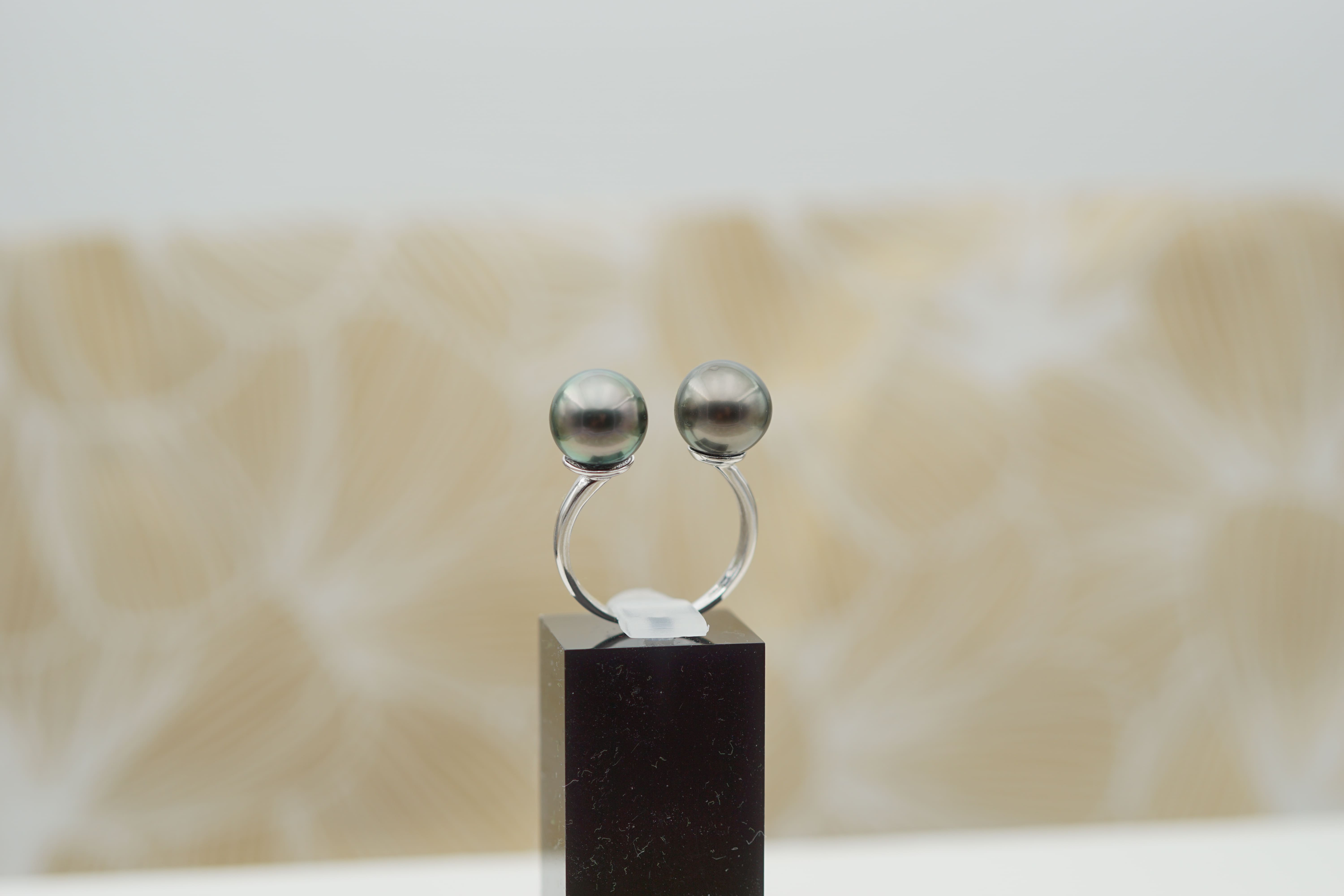 Succombez au charme de cette bague d’exception en argent rhodié, magnifiée par deux somptueuses perles de Tahiti de 9,5 mm.